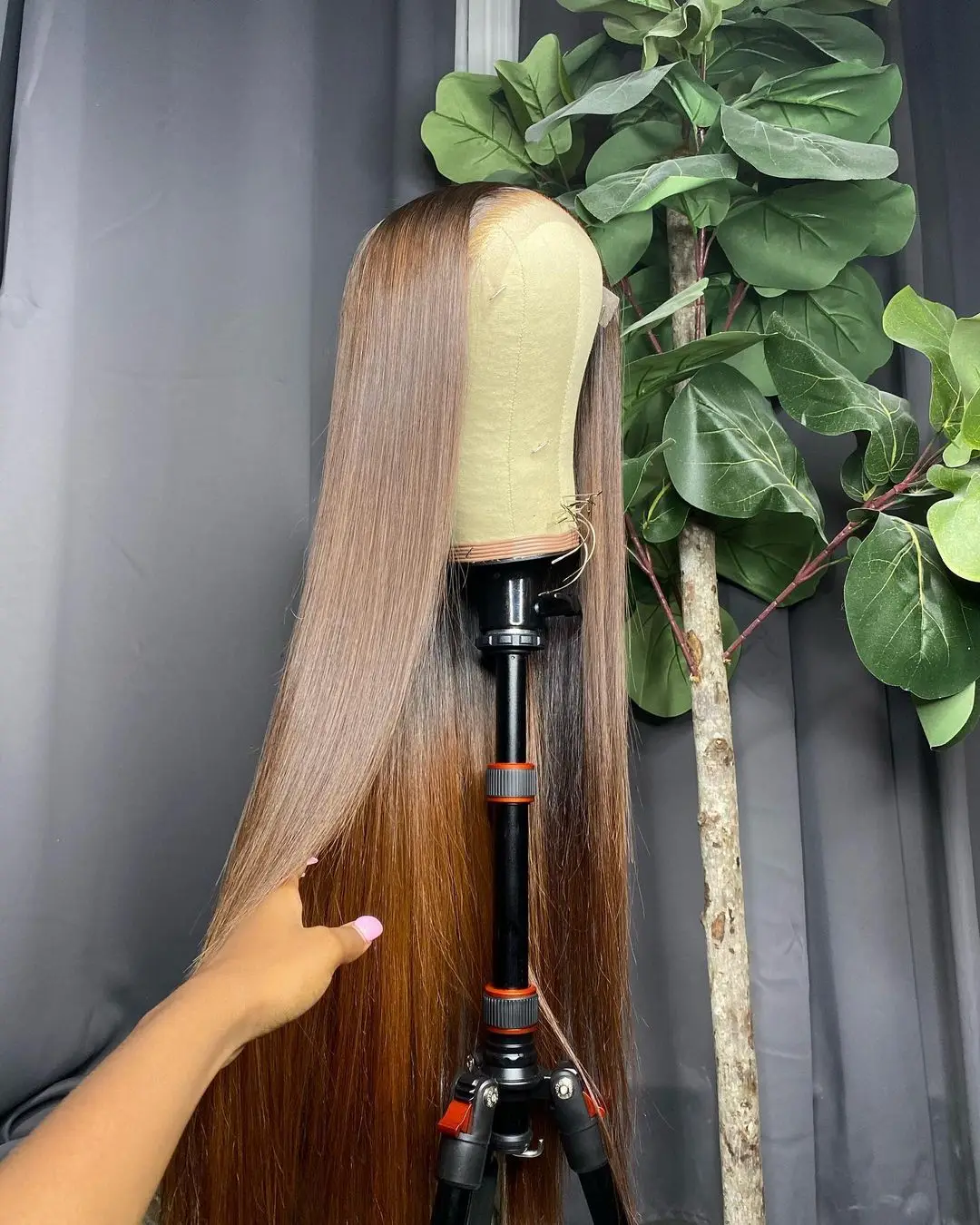 Коричневый 360 HD безклеевой фронтальный парик 13x6 13x4 4x 4 из человеческих волос с кружевом, бразильский Реми, шоколадный Омбре, имбирь, прямой, предварительно выщипанный
