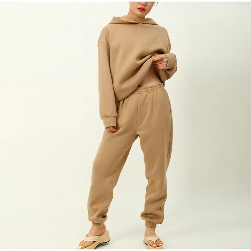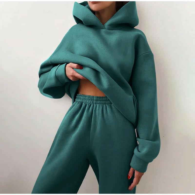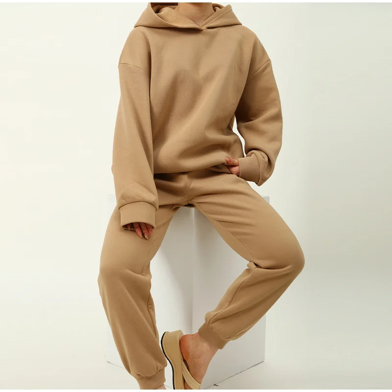Женская толстовка с капюшоном и брюки, 2 толстовки, однотонный, теплый и элегантный, модный, новинка 2021