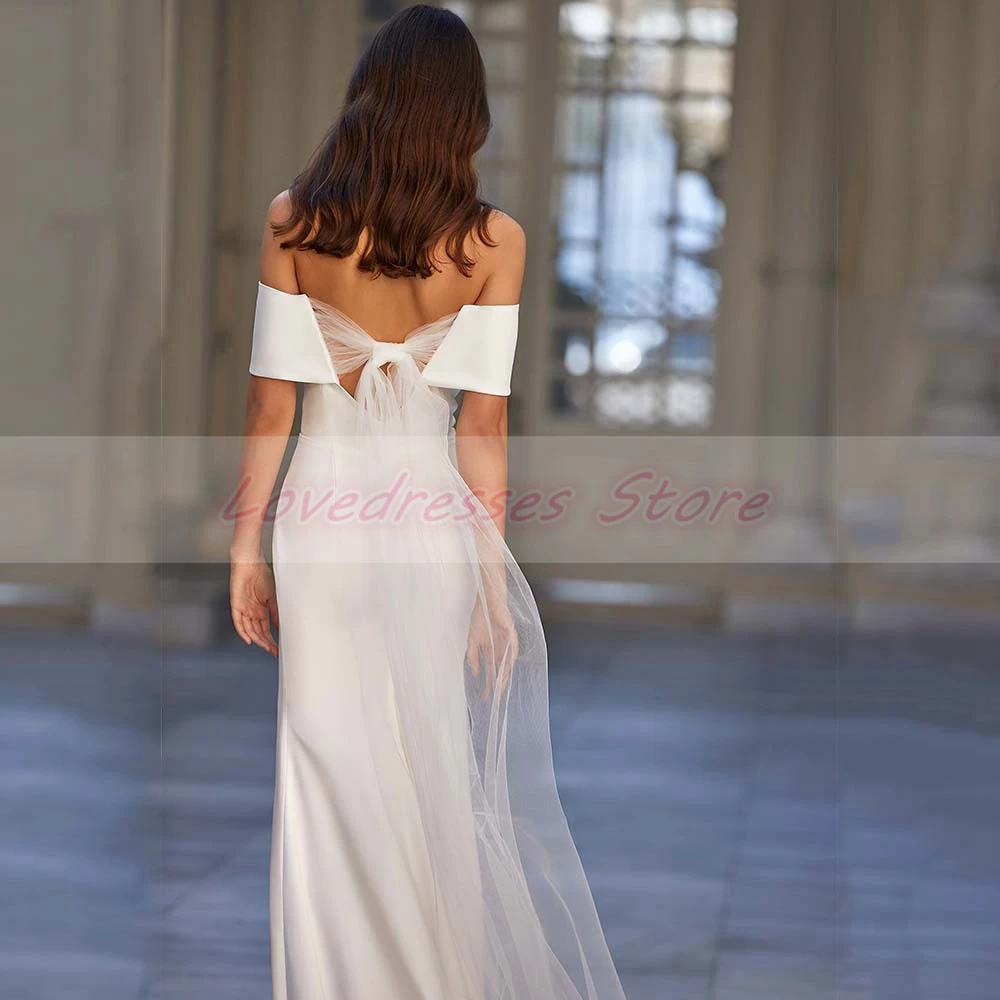 Женское свадебное платье до пола, стильное платье с открытыми плечами, вырезом лодочкой, открытой спиной и шлейфом, для невесты, 2021