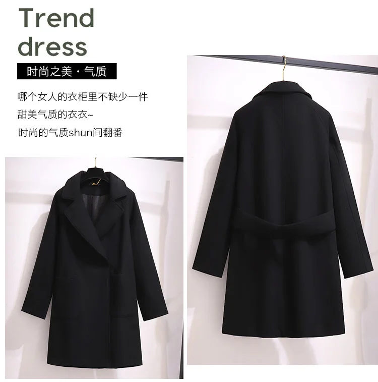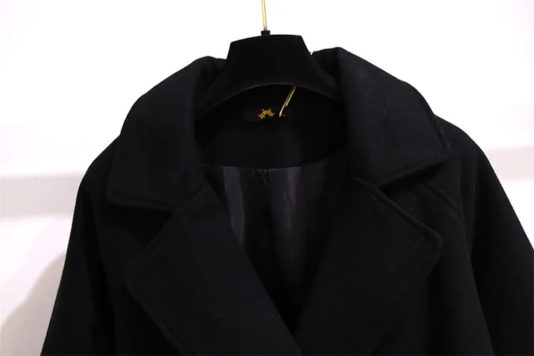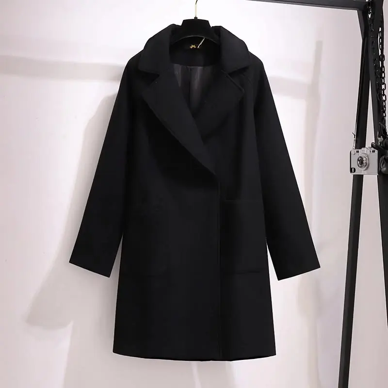 Женское осеннее шерстяное пальто с длинным рукавом и отложным воротником, 150 кг, обхват груди 157 см, 6XL, 7XL, 8XL, 9XL, 10XL, Свободное длинное повседневное черное пальто