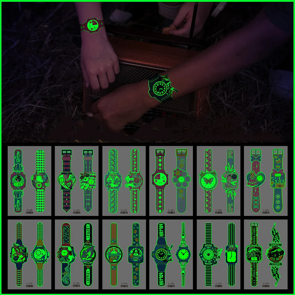 Водонепроницаемые светящиеся Детские фотообои для женщин, мужчин, детей, Мультяшные часы, боди-арт, тату-наклейки для девочек и мальчиков