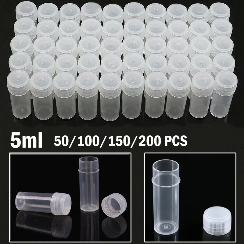 Пластиковые прозрачные мини-пробирки с плоским дном, 5 мл, с винтовыми колпачками, косметические дорожные контейнеры для хранения лосьона, 50-200 шт.