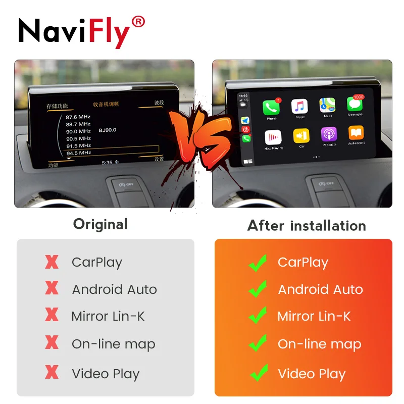 Navifly plug and play Декодер Беспроводной Apple CarPlay Android авто для Audi A4 A5 A1 A3 Q7 Q5 MMI 3G MMI 2G RMC MIB система