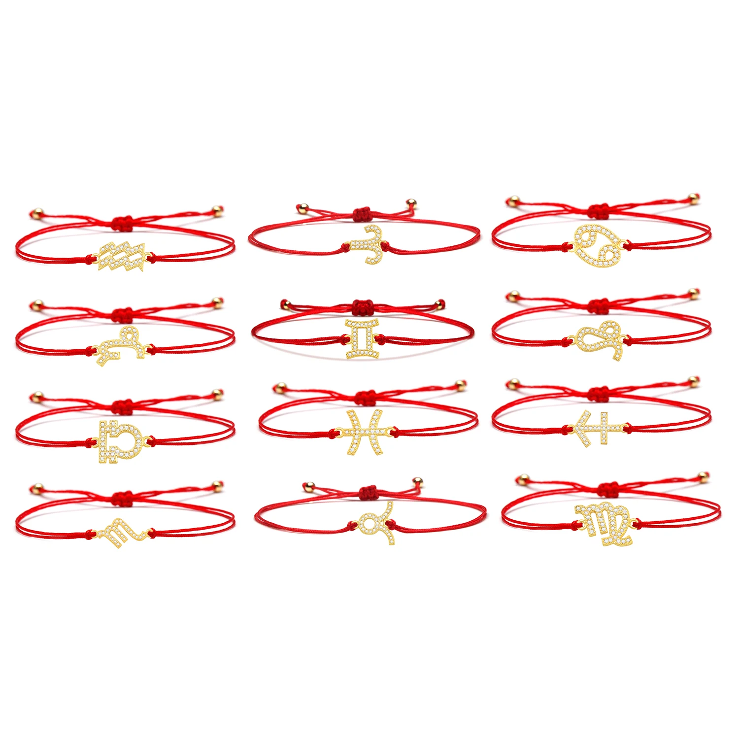 Название: AAA кубические циркониевые камни латунь CZ 12 созвездий очарование красная веревка плетеный браслет для женщин Девушки шикарные модные ювелирные изделия подарок