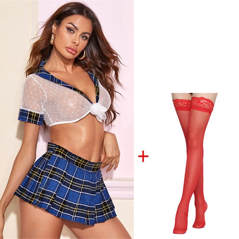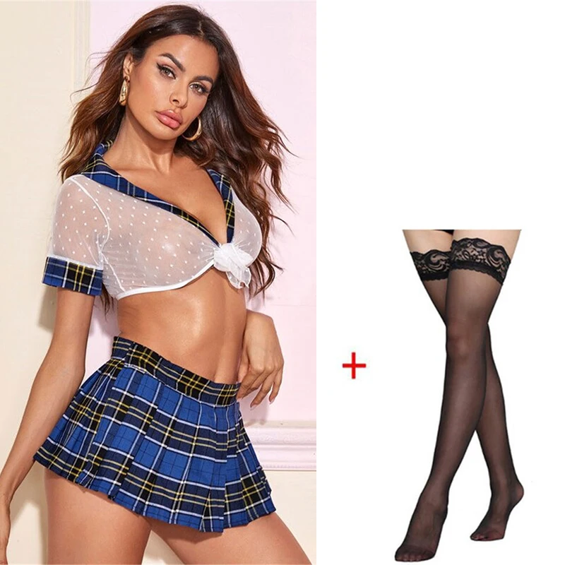 Плиссированная юбка, женское сексуальное нижнее белье для косплея, женское платье для школьниц, Женская кружевная мини-юбка, костюм, короткий топ