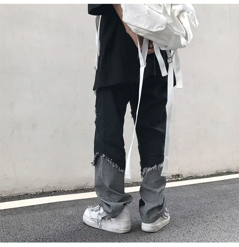 Контрастные джинсы в стиле Харадзюку, мужские брюки в Корейском сти...