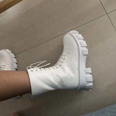 Ботильоны женские из искусственной кожи, модные однотонные полусапожки на толстой подошве, на шнуровке, мягкая удобная элегантная Осенняя обувь