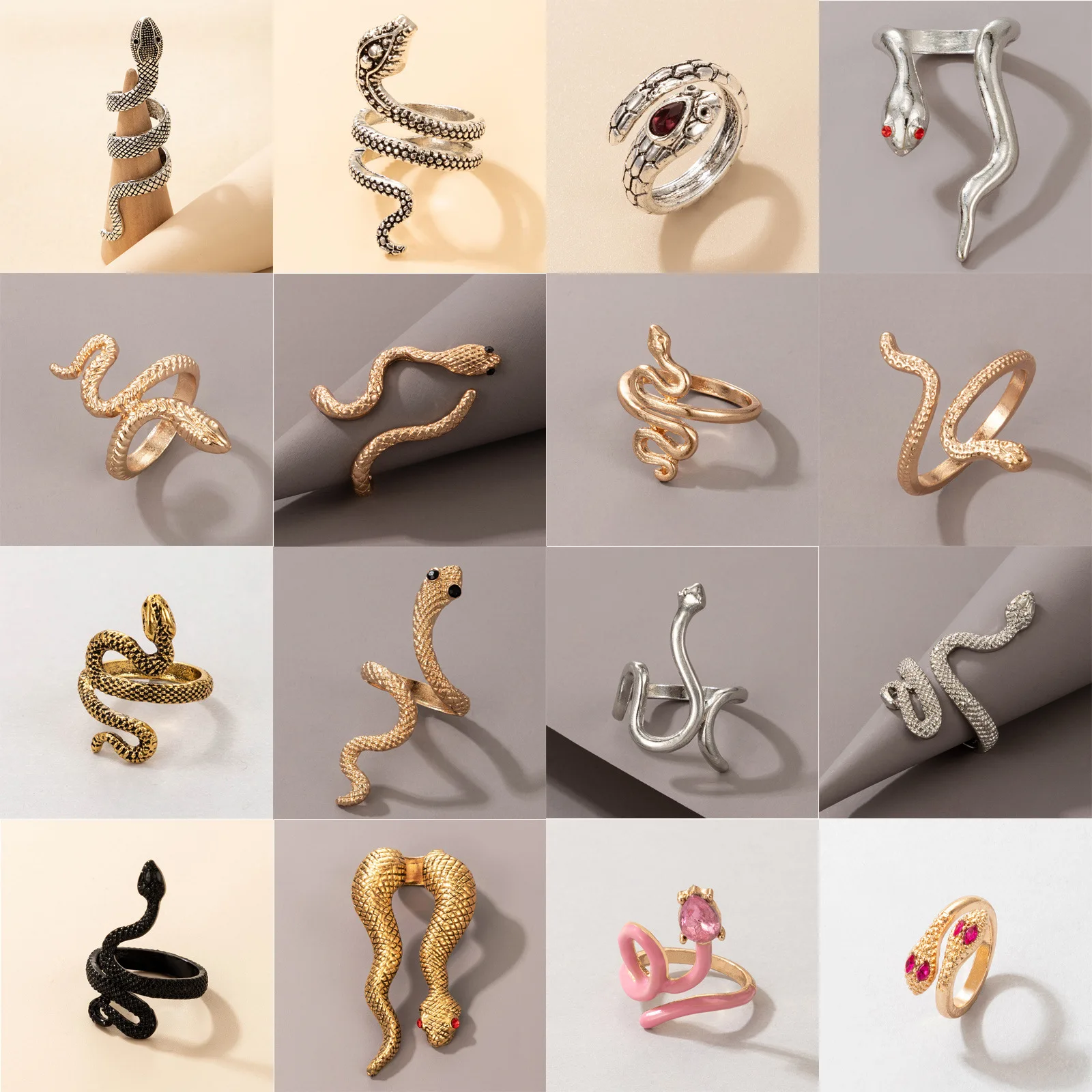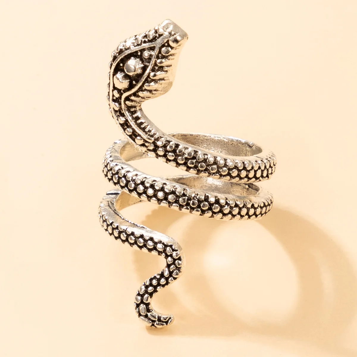 Модное кольцо в стиле панк для мужчин и женщин, золотистого и серебристого цвета, металлическое кольцо в ретро стиле с крупным змеиным рисунком животных, ювелирные изделия