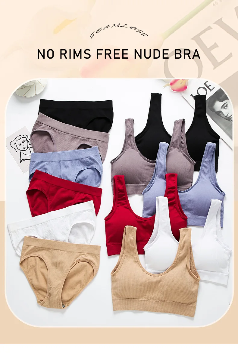 Комплект женского нижнего белья в полоску, однотонный укороченный топ без косточек, мягкий комплект нижнего белья большого размера