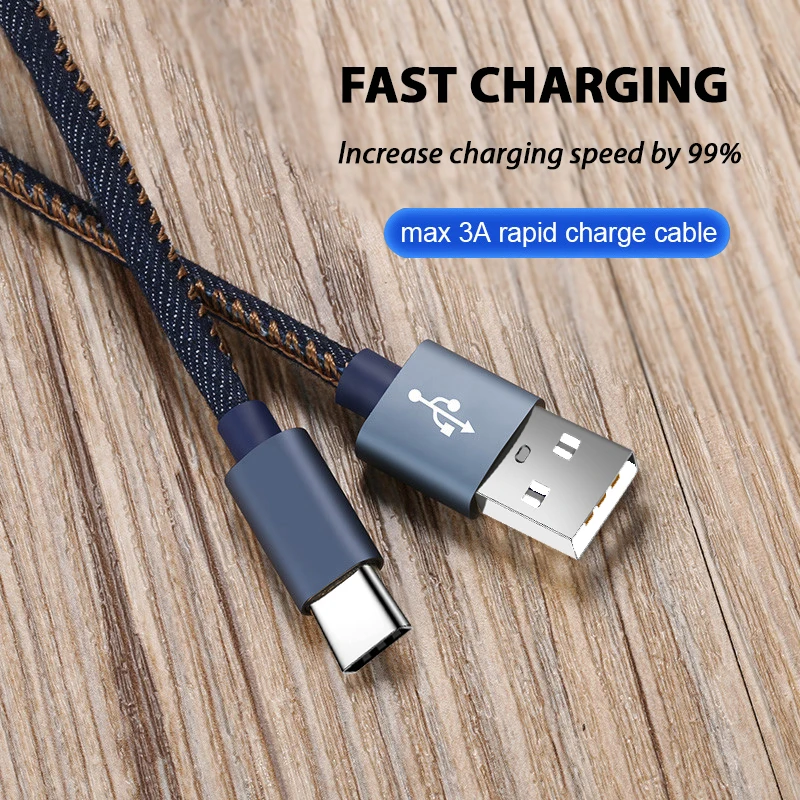 Дешевый джинсовый USB-кабель Type C, кабель для передачи данных 3A, быстрая зарядка для мобильных телефонов Xiaomi Redmi Note 8 Pro, Samsung, быстрая зарядка мобильных телефонов Android