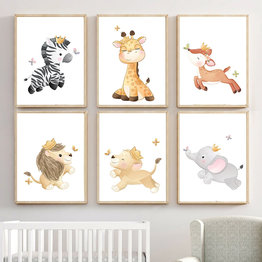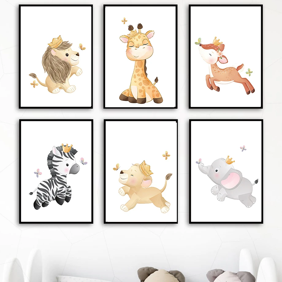 Мультяшные Львы Зебра слон жираф олени детская настенная Картина на...
