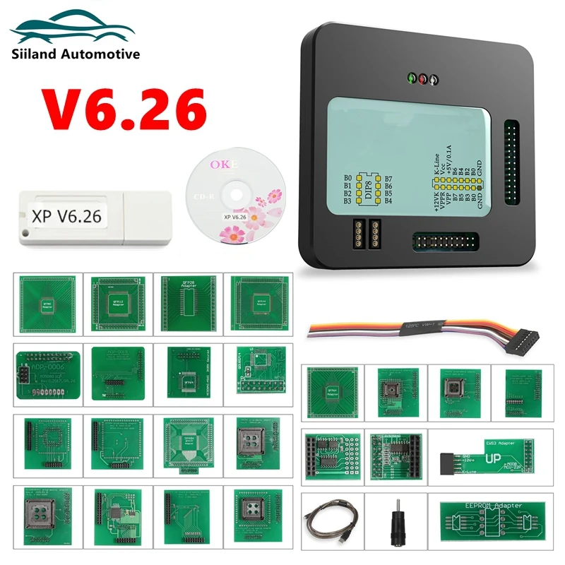 V6.26 адаптеры в комплекте:ADP-0001 TMS370 PLCC28 программирующий адаптерADP-0002 TMS370 PLCC44 программирующий адаптерADP-0003 TMS370 PLCC68 программирующий адаптерADP-0004 для Motorola HC05B/X PLCC52ADP-0005 для Motorola HC05B/X QFP64ADP-0006 ST M35080 in-circuit программирующий адаптерADP-0008 TMS374 семейный сетевой адаптер для программированияADP-0009 MC68HC05V12 программирующий адаптерADP-0010 TMS374 бортовой Адаптер для программированияADP-0011 HC11EA9/E9 программирующий адаптерADP-0017 HC(S)12 BDM / ARM микроны программирование в цепи/байпас адаптер безопасностиДополнительный адаптер для 5M48H P-FlashADP-0019 Rev.AАдаптер EWS3Адаптер EEPROMАдаптер QFP28Адаптер QFP64Адаптер QFP80Адаптер QFP112Адаптер QFP144