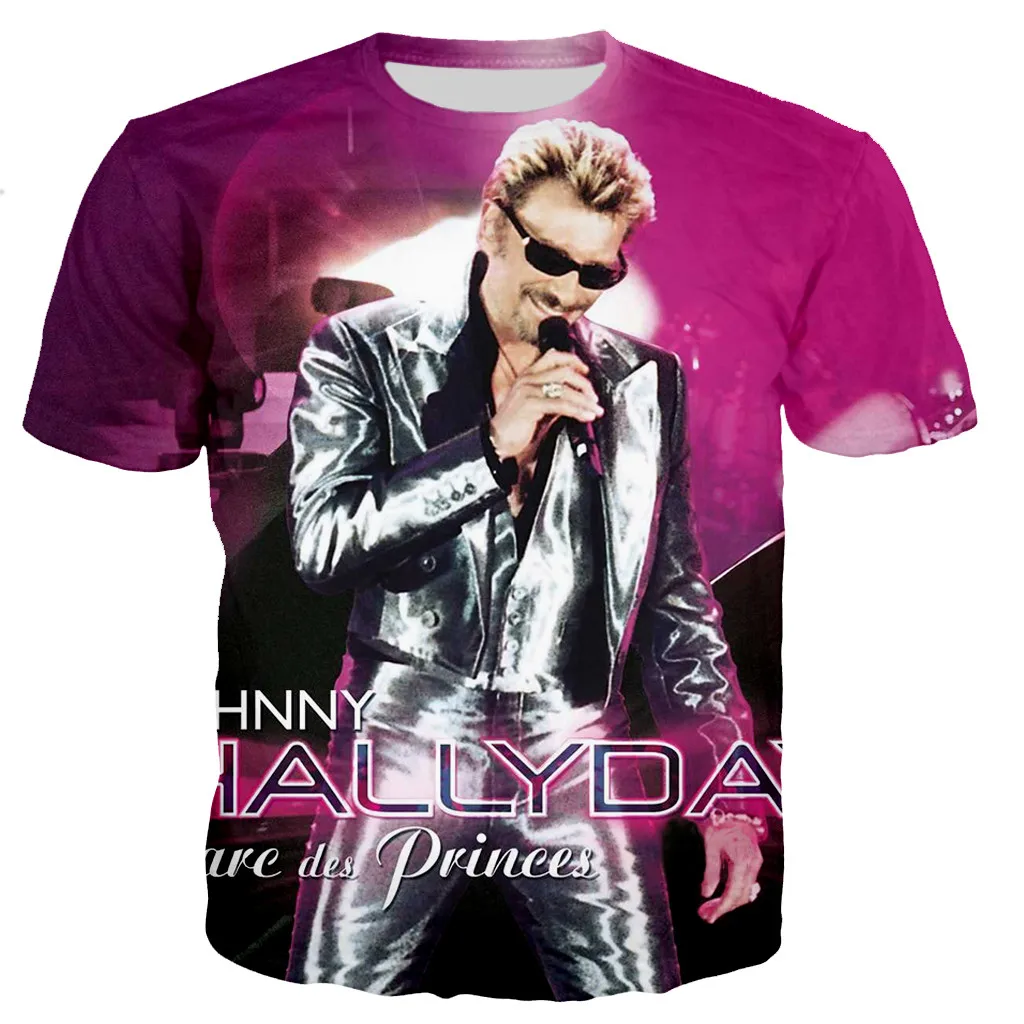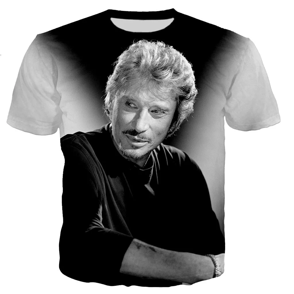 Джонни Холлидей 3D печатных футболка для мужчин и женщин модные лет...