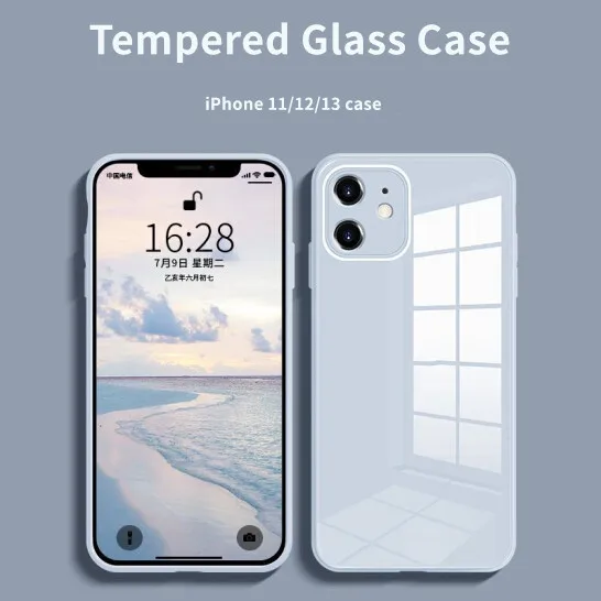 Чехол из жидкого стекла с прямыми краями для телефона iPhone 12 11 ...