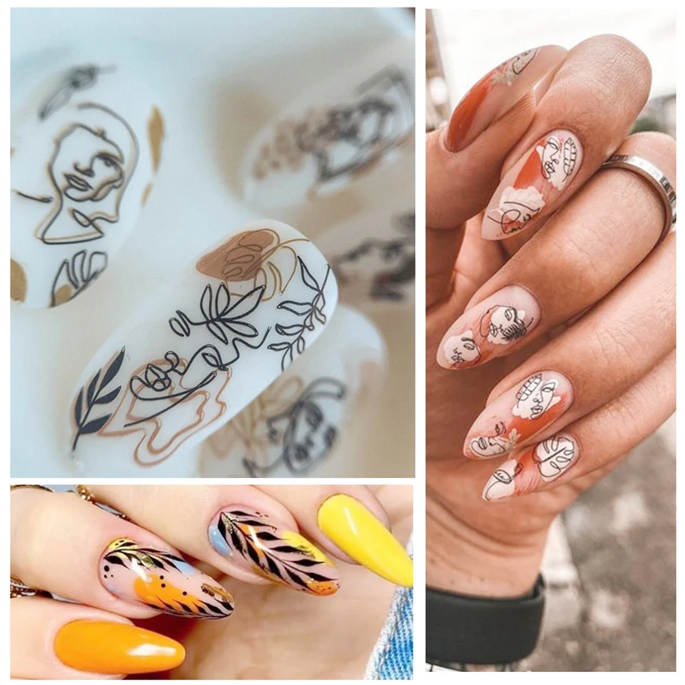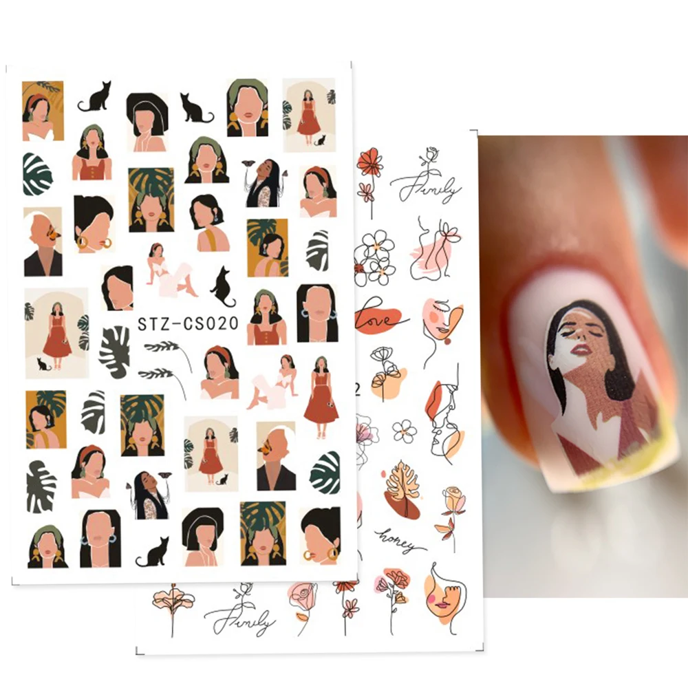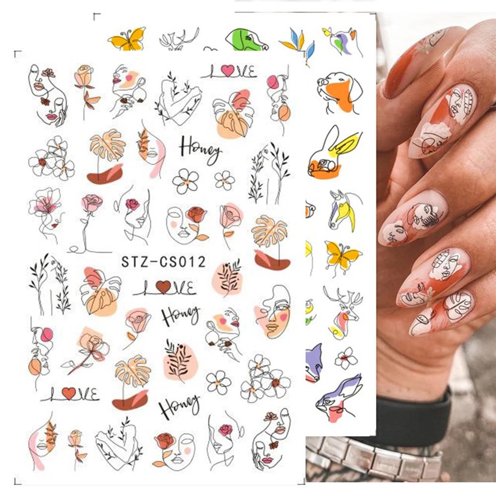 1 лист 3D наклейки для ногтей с абстрактным дизайном для женщин, клейкие наклейки для маникюра, декоративные материалы для дизайна ногтей