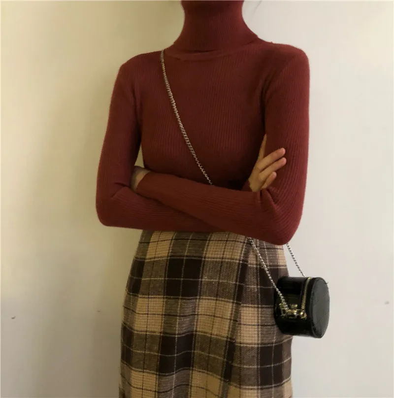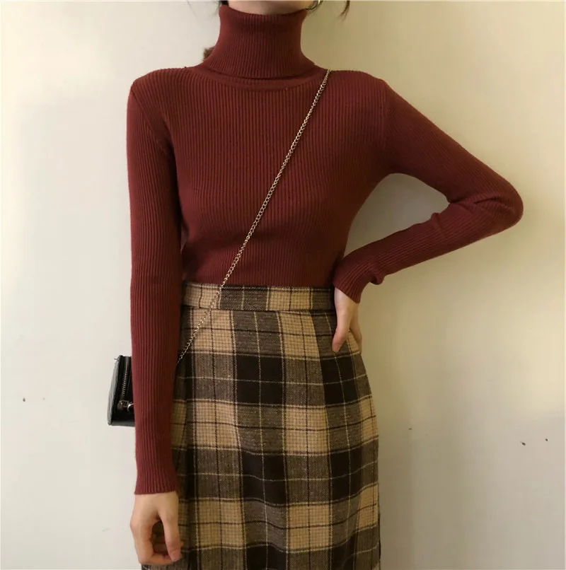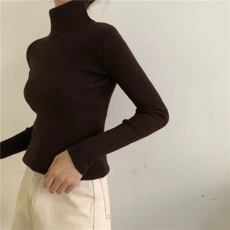 Женский свитер с длинным рукавом, плотный вязаный пуловер в рубчик, Облегающий мягкий теплый джемпер с высоким воротником, Осень-зима 2021