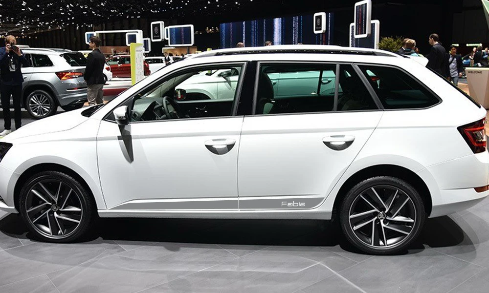 Боковые наклейки на двери автомобиля для Skoda Fabia, спортивные юбки в полоску, декоративная виниловая пленка, наклейки