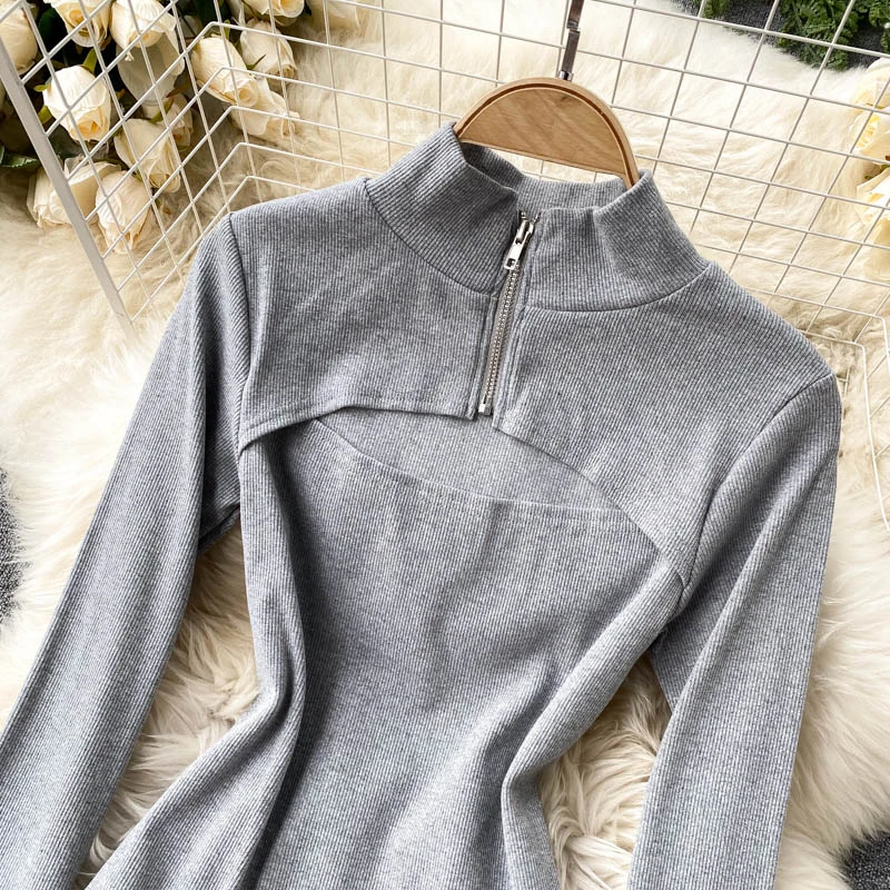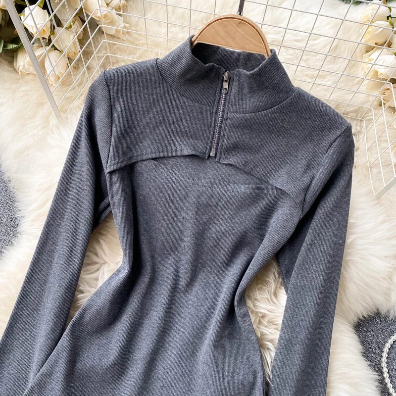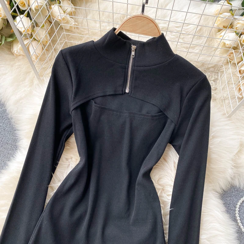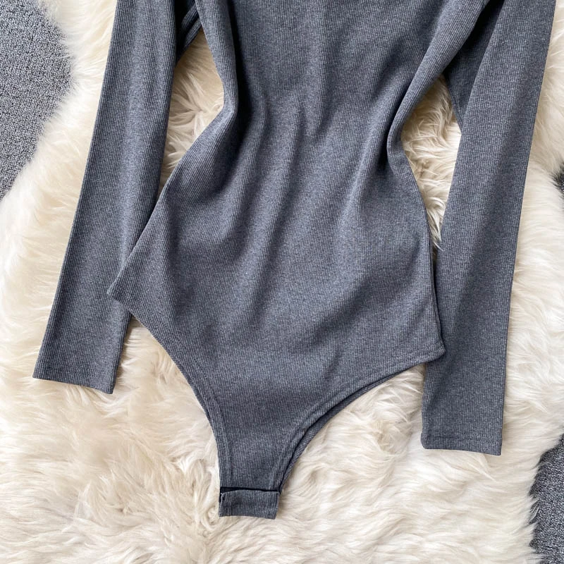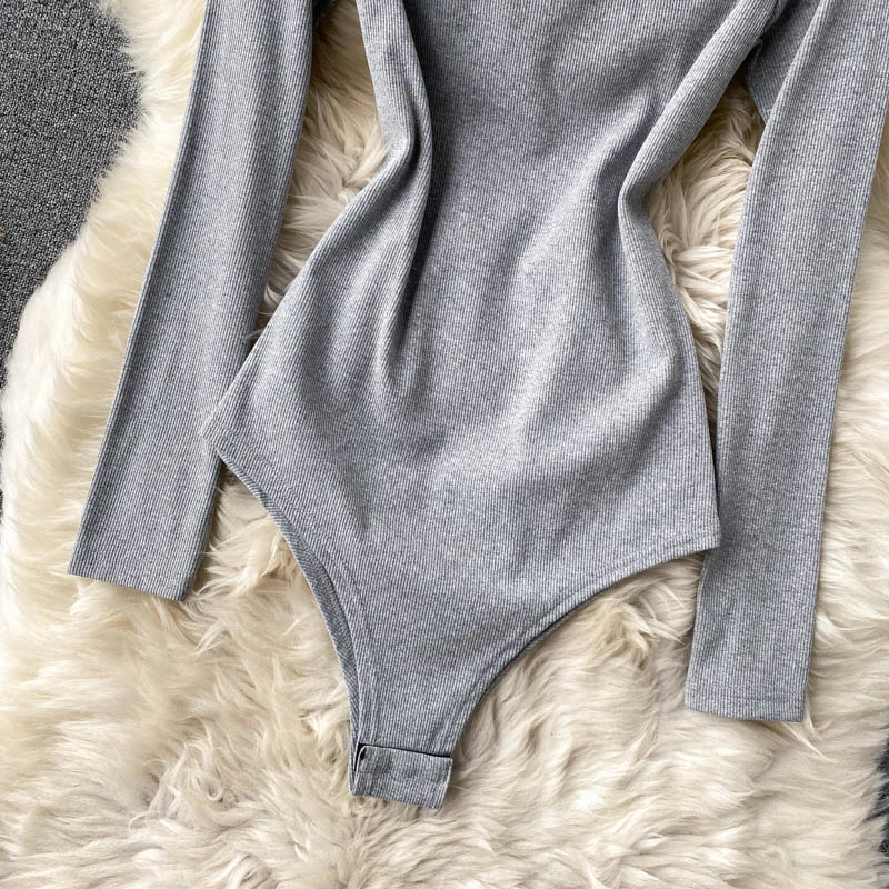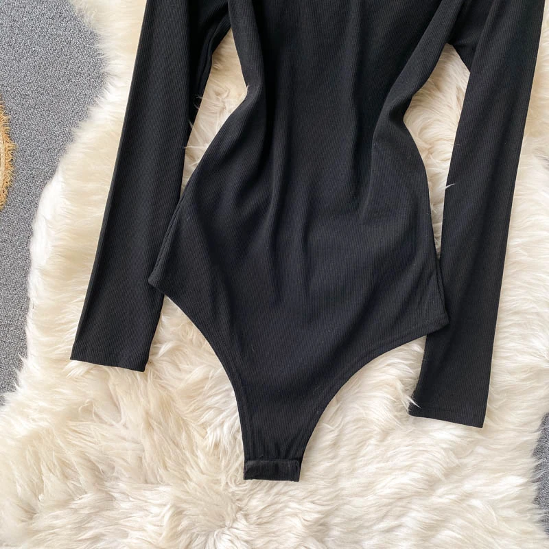 Женское боди с длинным рукавом, на молнии, с ложным воротником