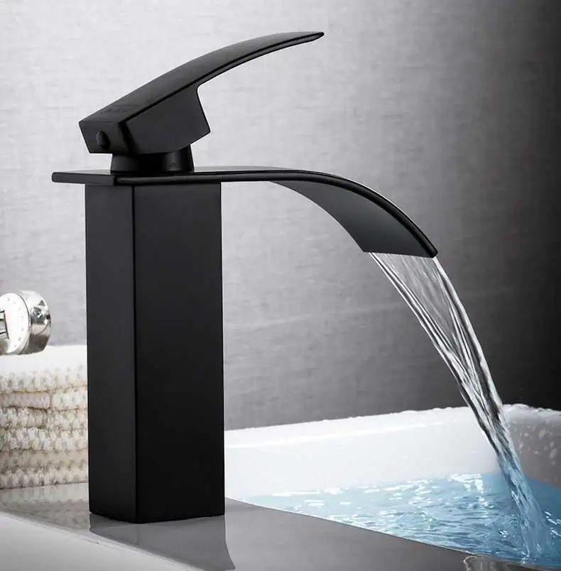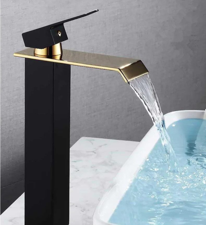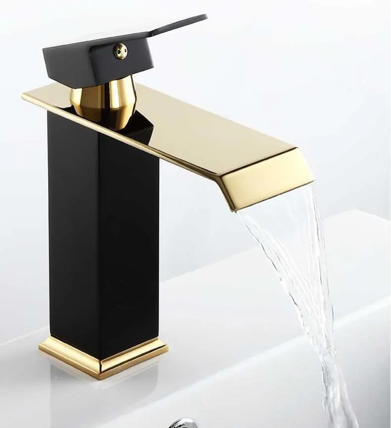 Смеситель для раковины, латунный кран Водопад золотистого и черного цветов для ванной комнаты, для горячей и холодной воды