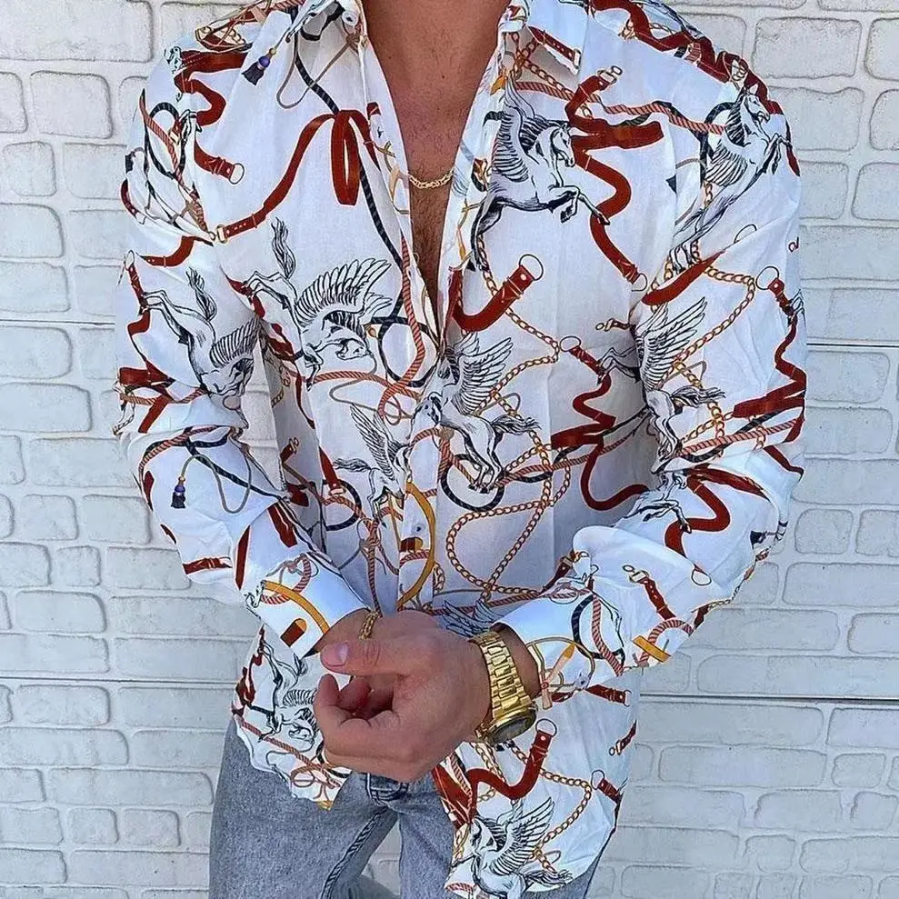 Мужская Повседневная рубашка с принтом, однобортный Кардиган с длинным рукавом, рубашка в европейском и американском стиле, 2021