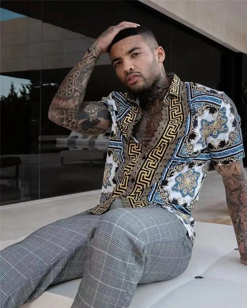 Новая модная мужская рубашка в стиле барокко с лацканами и пуговица...