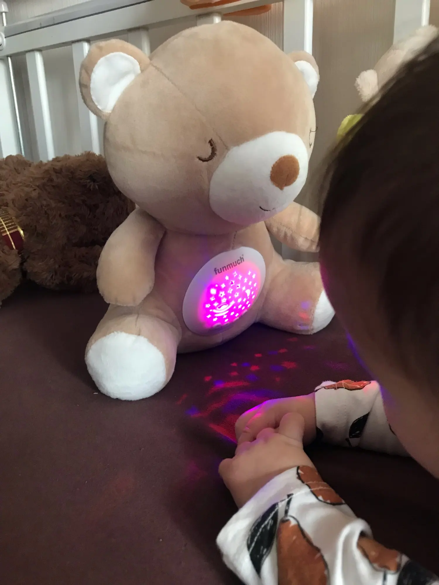 Дошёл за 3-4 недели до Московской области (Люберцы), чтобы вы понимали, на вайлдберис я его хотела брать за 4 300! Потом случайно наткнулась тут и не пожалела. Все супер! Приятная хорошая нежная ткань, проектор работает, все светится, музыка работает - есть и мелодии, и 3 варианта белого шума, сердцебиение.. на сердцебиение дочь вообще залипла (4 месяца). В общем это просто супер!!! Скоро подружки рожать будут, им закажу тоже!