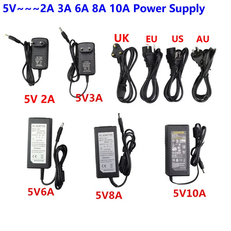Импульсный источник питания постоянного тока 5 В, 2 А, 3 А, 6 А, 8 А, 10 А, адаптер переменного тока 110-220 В, трансформатор для осветительной сети для светодиодной ленты видеонаблюдения