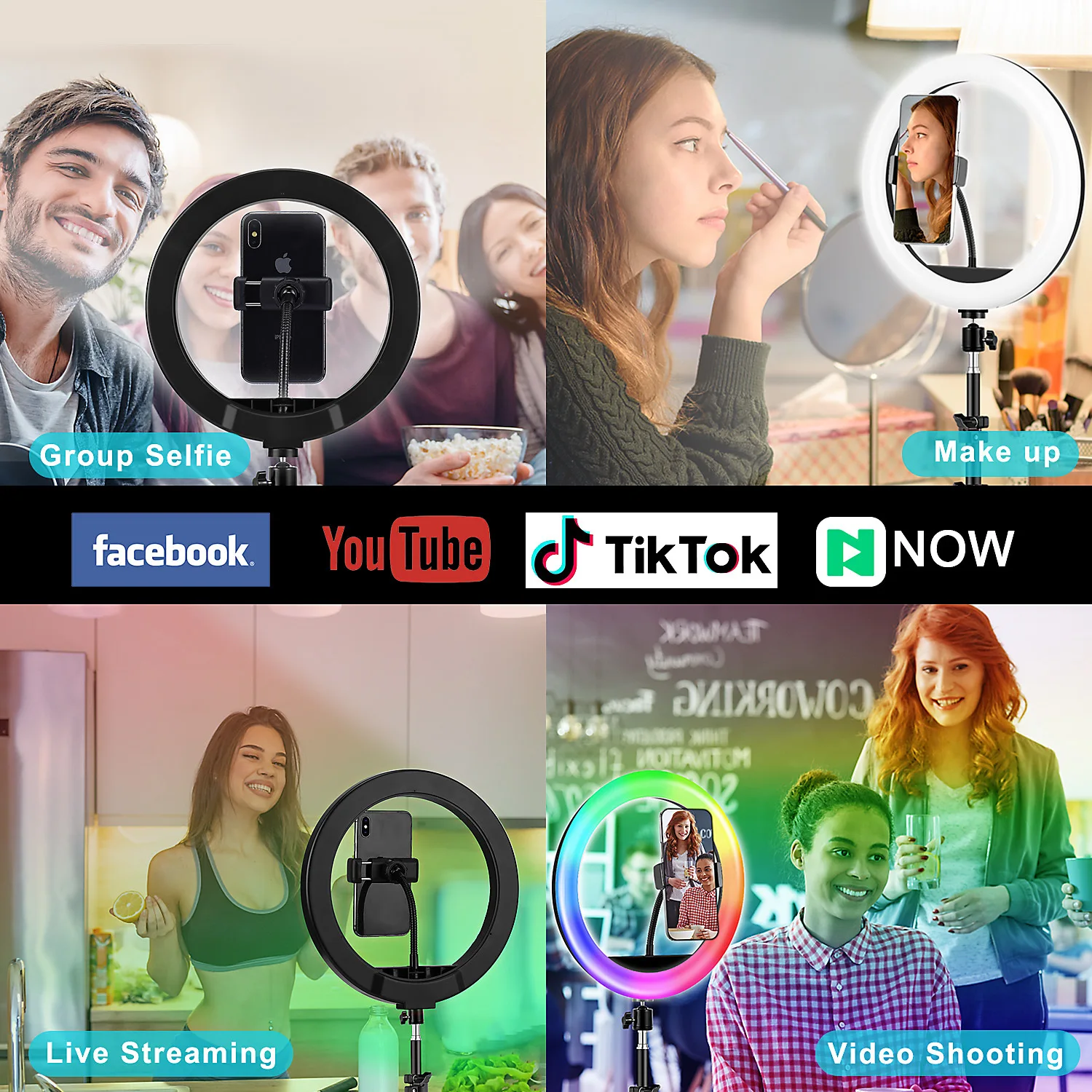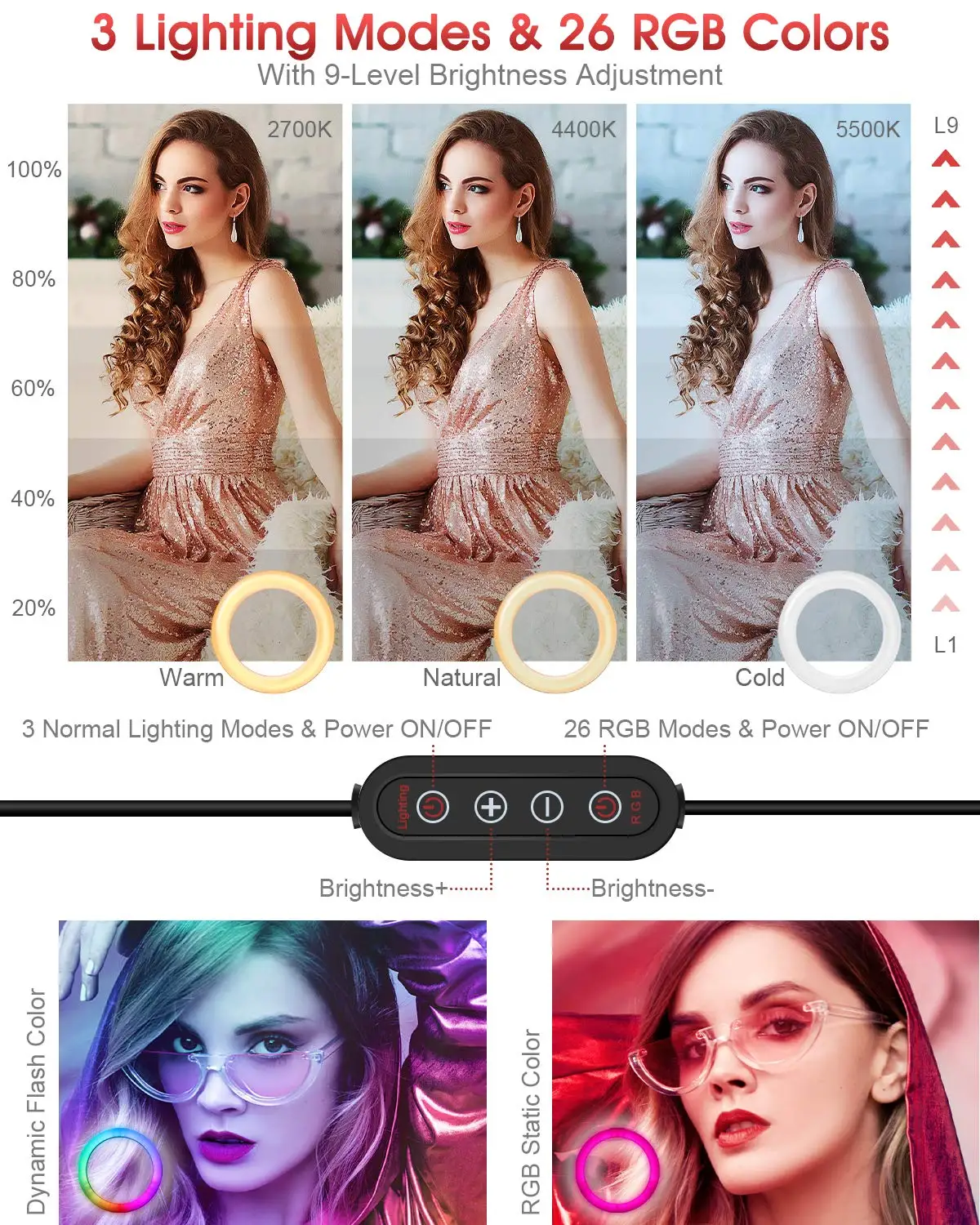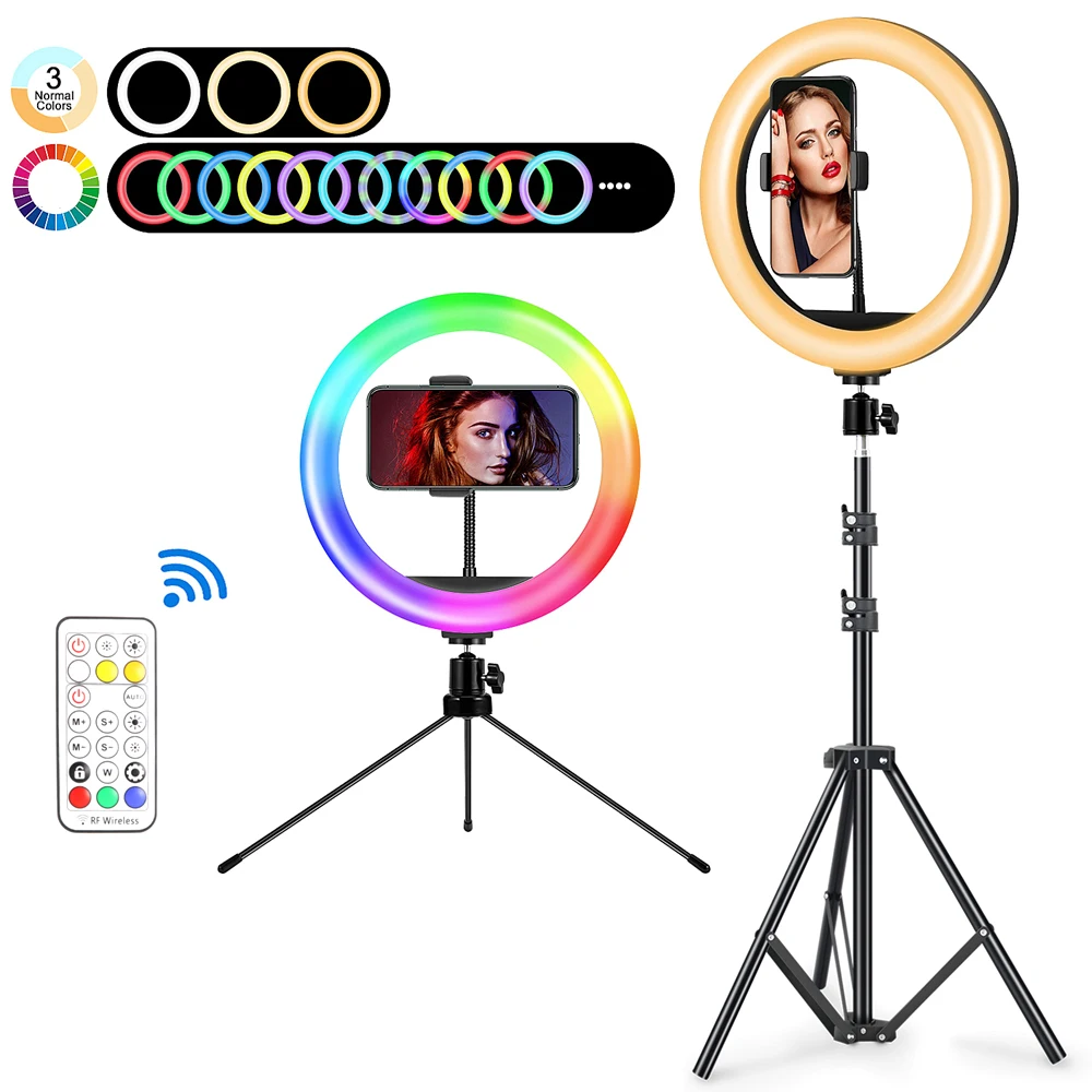 Кольцевой светильник 13 дюймов с RGB-подсветкой и штативом, светоди...