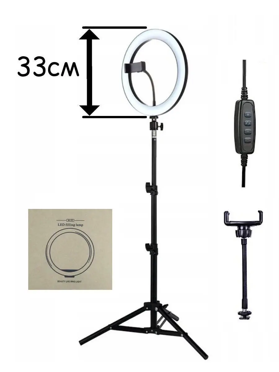 Кольцевой светодиодный светильник для селфи, 13 дюймов, 33 см, с тр...