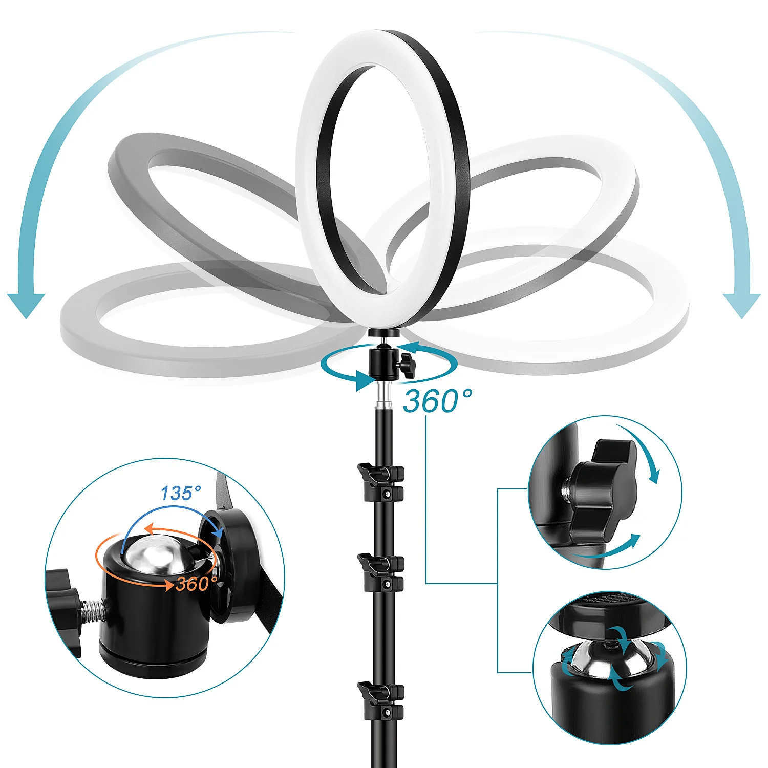 Кольцевой светодиодный светильник для селфи, 10-13 дюймов, со штати...