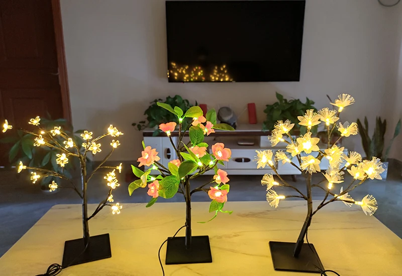 2. Все три типа ламп-24 светодиода. 24 светодиода цветков вишни и волоконно-оптические цветки на цветках; Но цветение персика-около 12 светодиодов на цветках и 12 светодиодов на листьях.