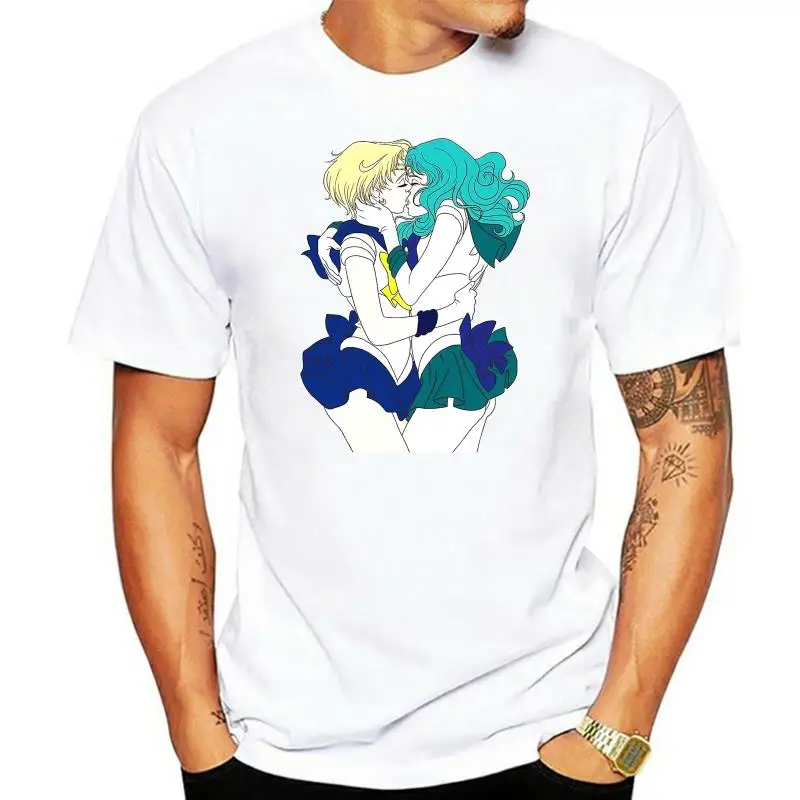 Белая хлопковая Футболка для девушек Uranus Нептун с аниме Сейлор Мун, с принтом, топ, хлопковая футболка с коротким рукавом