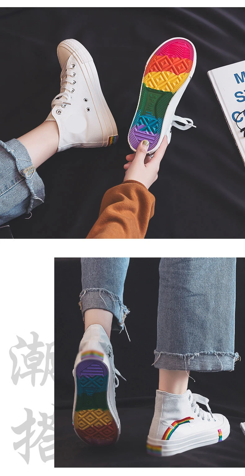 Кроссовки женские высокие, Вулканизированная подошва, радужные, холщовые, удобная обувь в ретро стиле, модель 2020