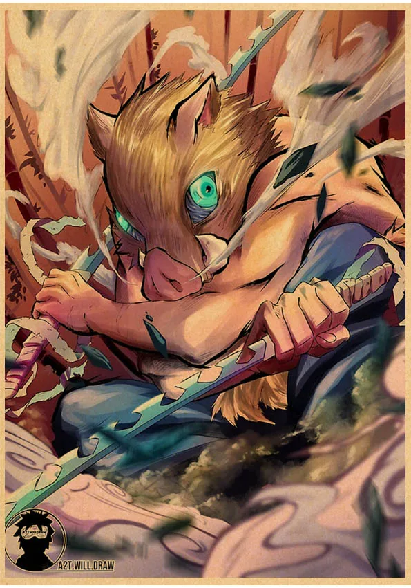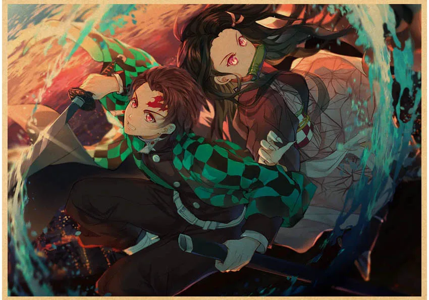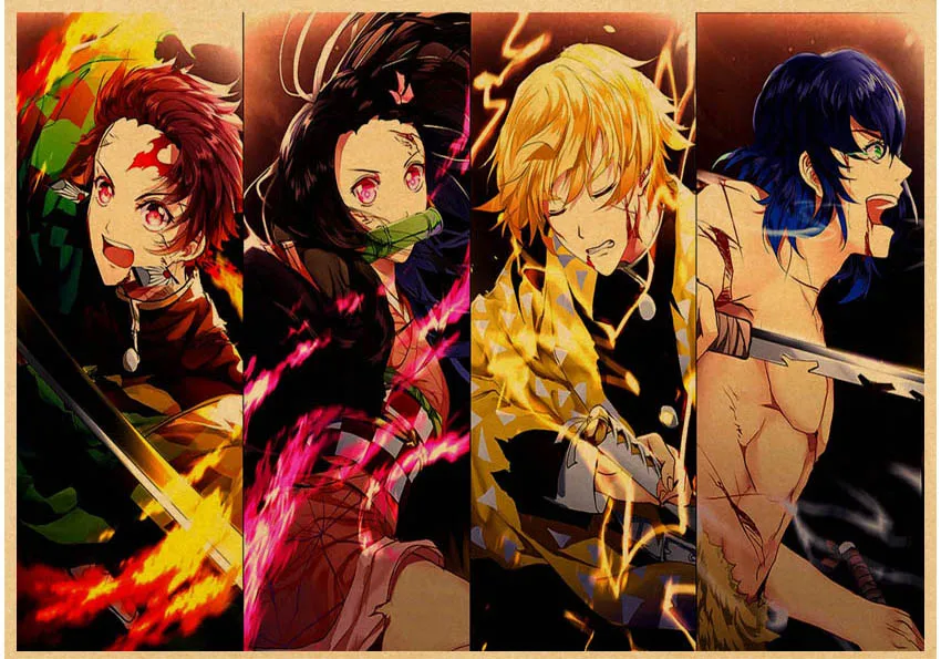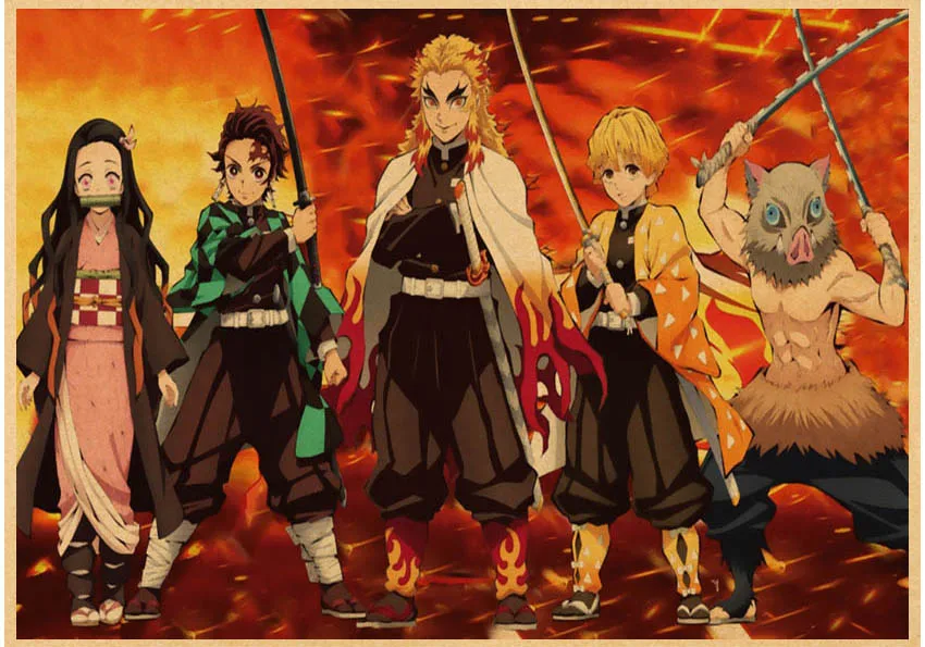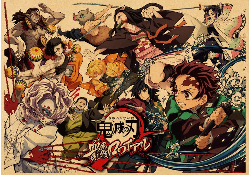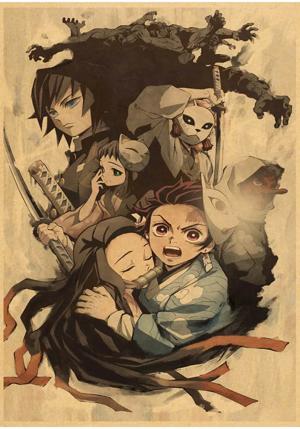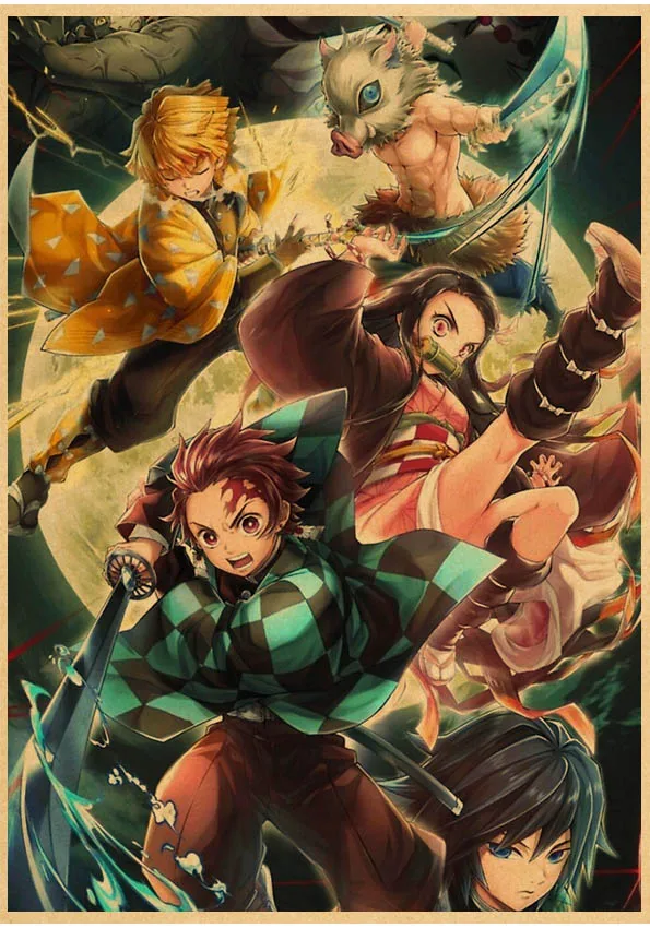 Мультяшная манга крафт-бумага японское аниме постер-убийца демонов в стиле ретро Высококачественная Наклейка на стену декоративная живопись a316