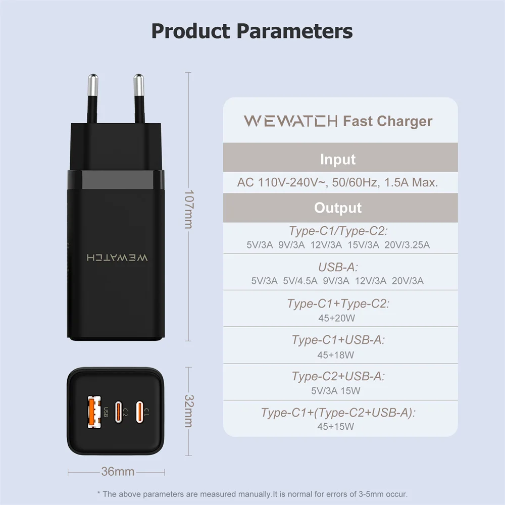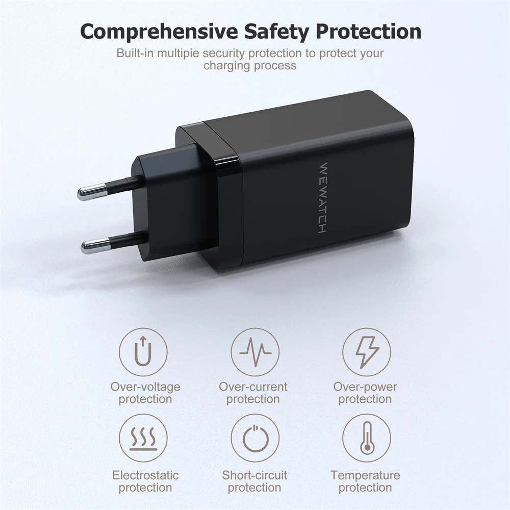 : Зарядное устройство WEWATCH использует новейшую технологию зарядки GaN, которая не только улучшает скорость, но и улучшает мощность.
