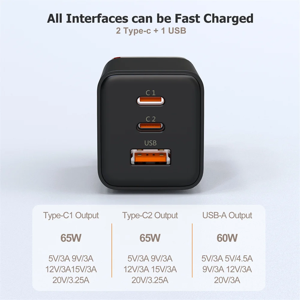 TYPE-C1 +(TYPE-C2 + USB-A): 45 + 15 Вт