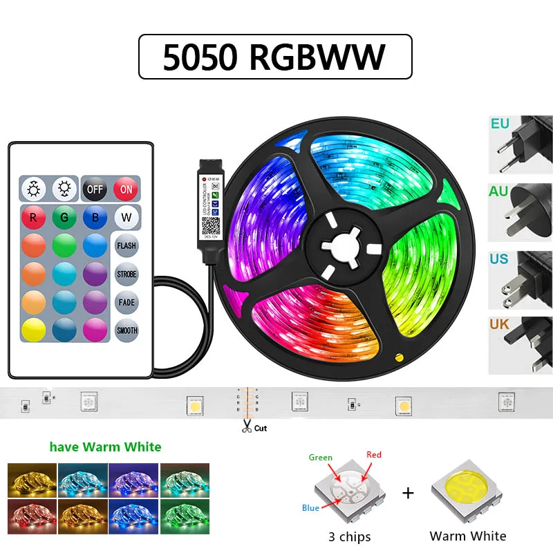 RGBWW светодиодный ленточный светильник RGB 5050 Wifi инфракрасный Bluetooth управление RGB 4в1 гибкий светильник с диодным ТВ ПОДСВЕТКА светильник подходит для дома