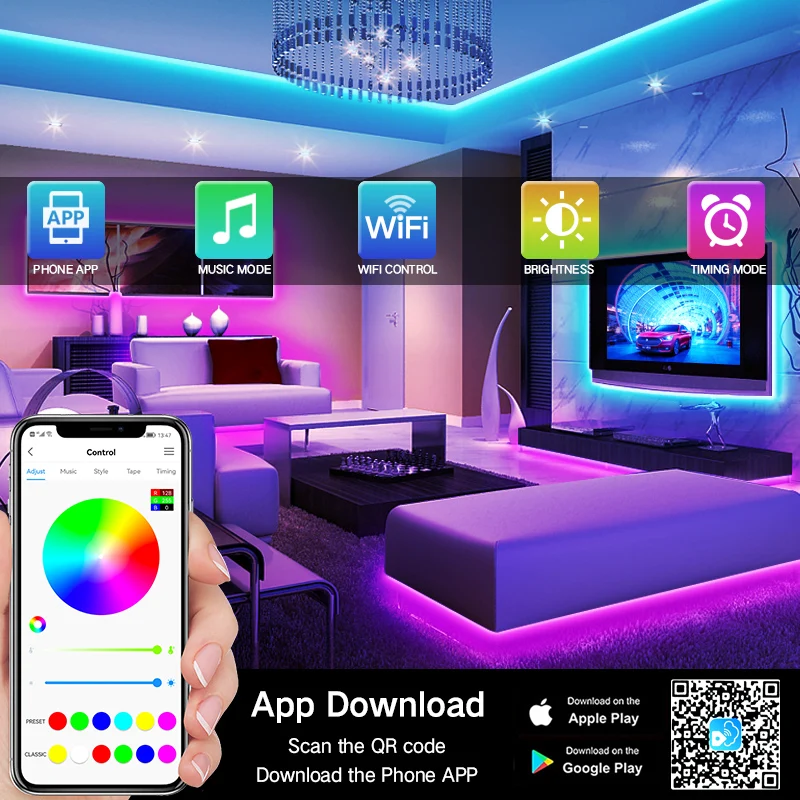 30 светодиодный s светодиодный светильник 5050 WIFI RGB luces свето...
