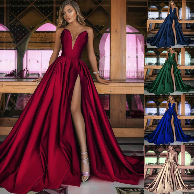 Женское длинное платье без бретелек, красное, синее, золотое, зеленое платье с глубоким V-образным вырезом в винтажном стиле, для свадьбы, вечеринки, 2021
