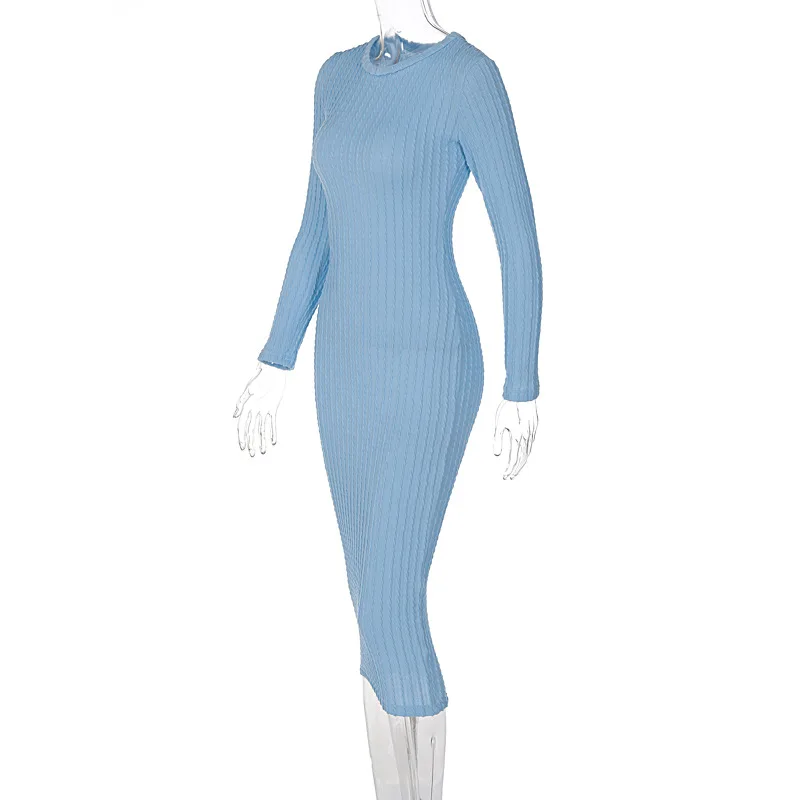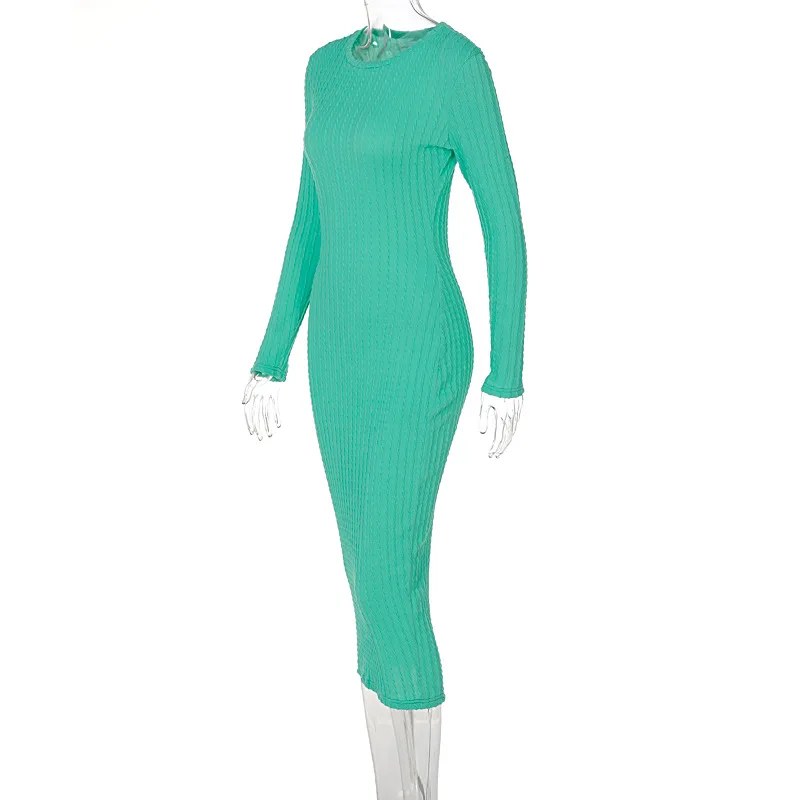 Женское трикотажное платье макси с длинным рукавом, элегантное облегающее вечернее длинное платье, повседневное зеленое или синее вечерние-свитер на осень и зиму, 2021