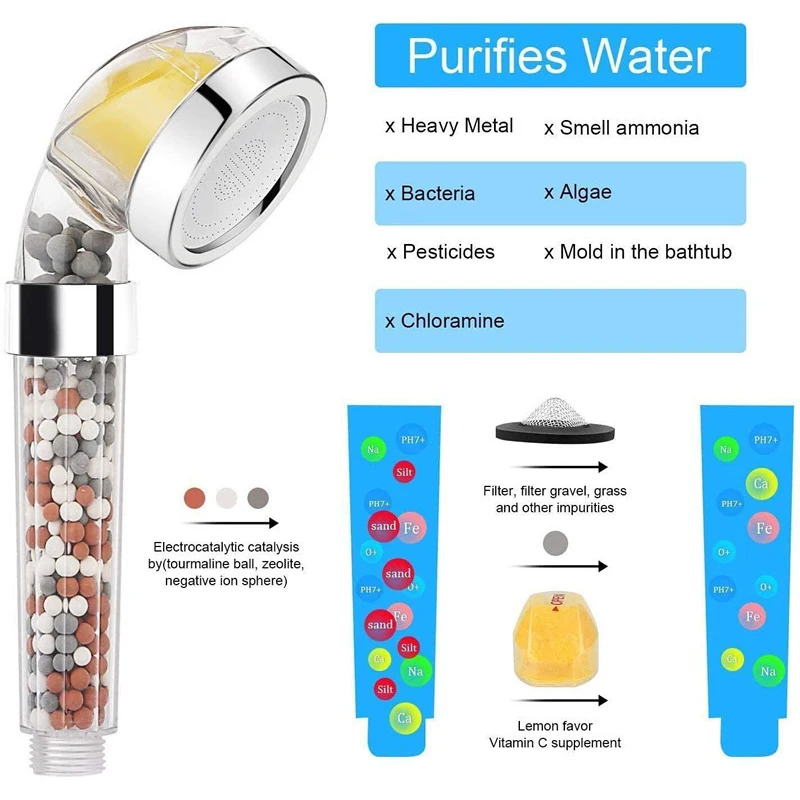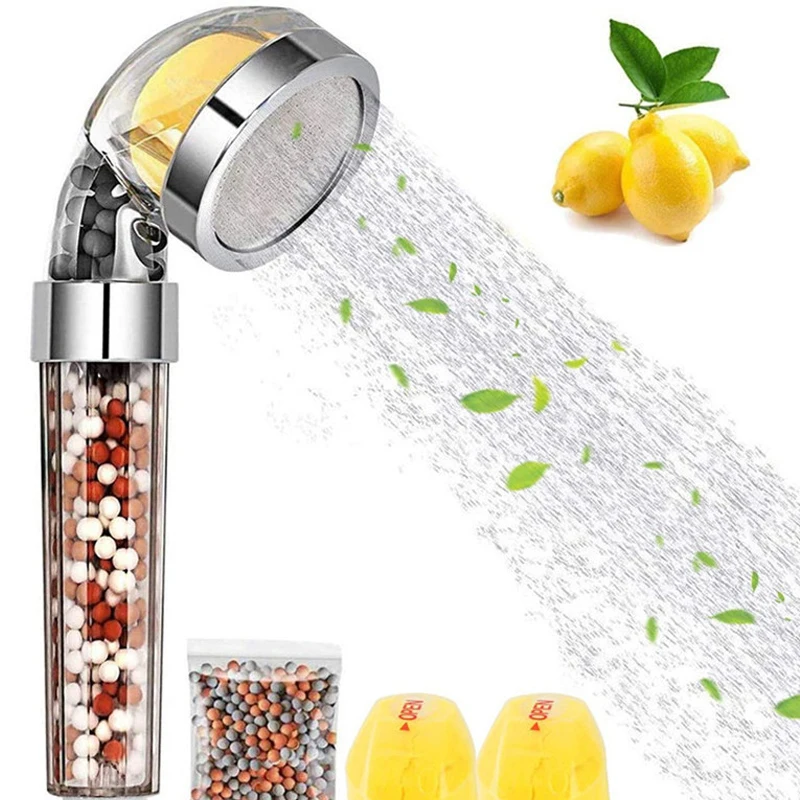 Водосберегающая насадка для душа высокого давления с ароматом лимона, насадка для душа с ионными минеральными бусинами и фильтром для ванной комнаты