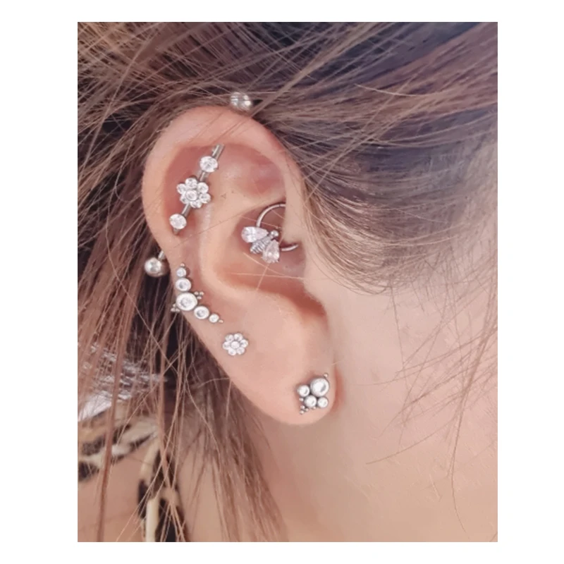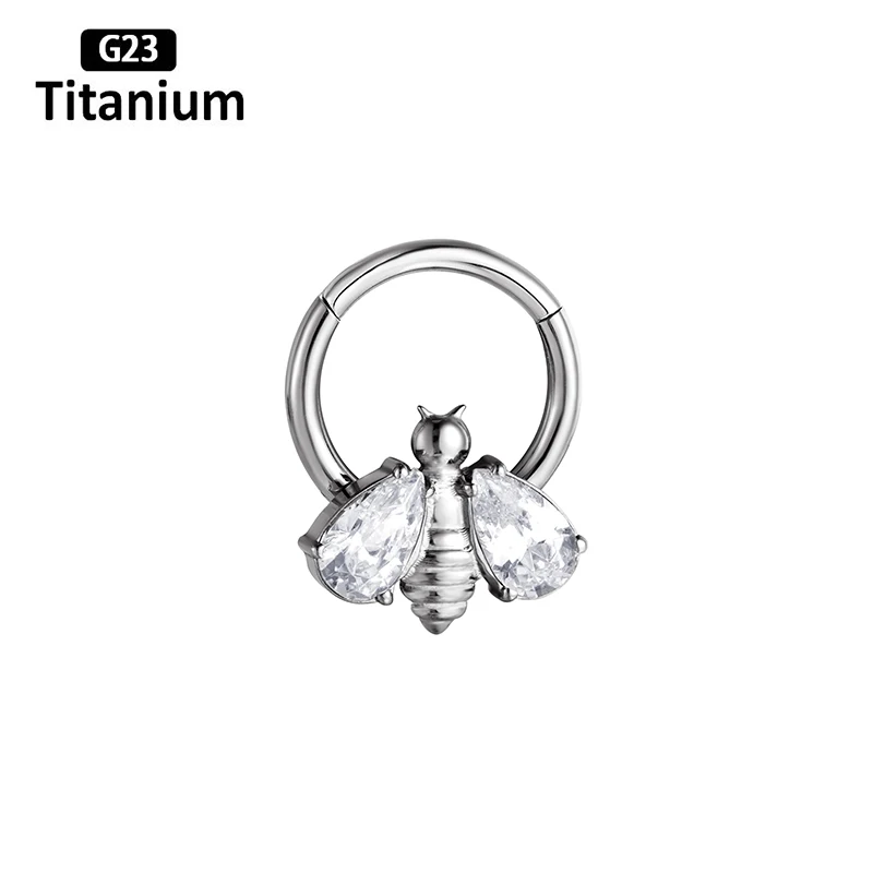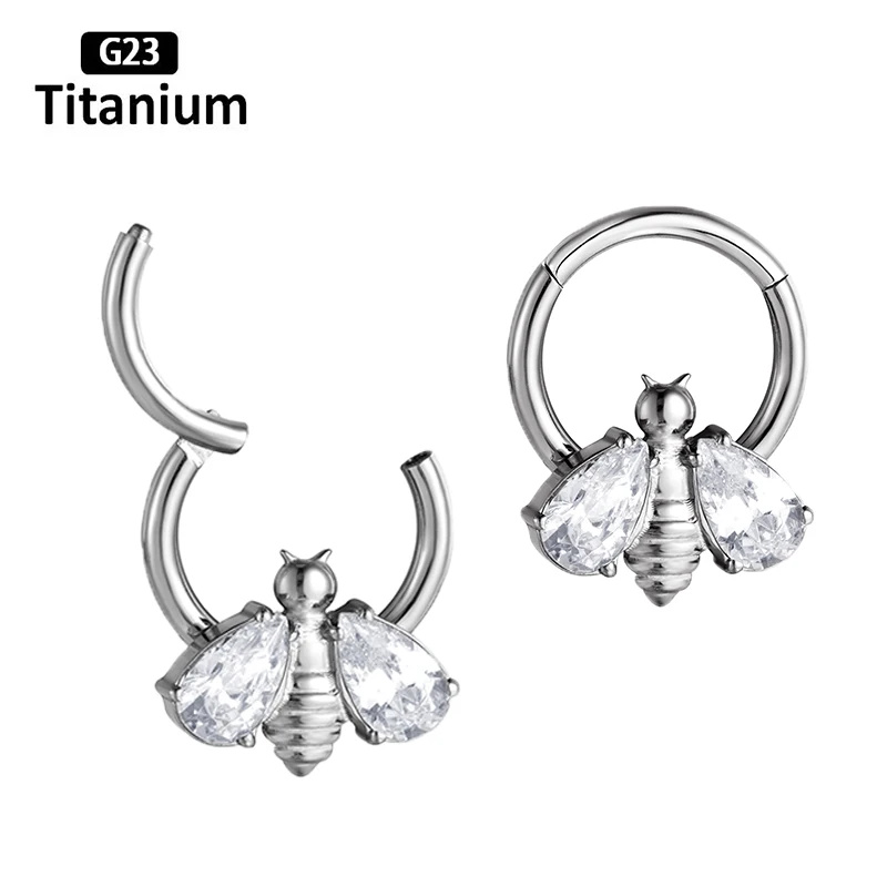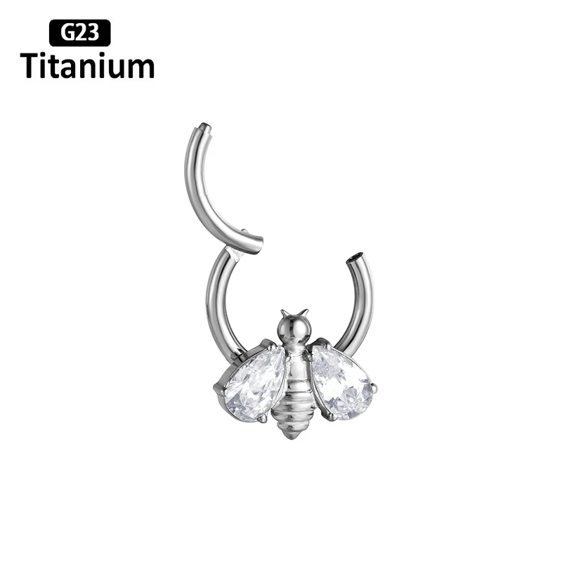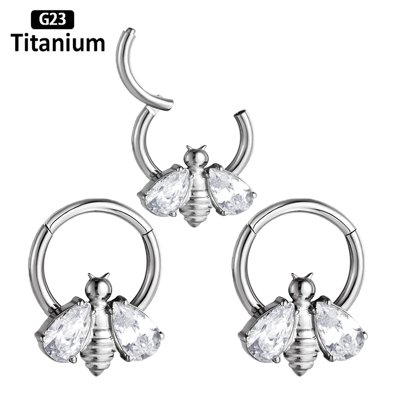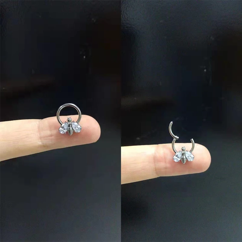 G23 кольцо для пирсинга из титана, носовое кольцо с цирконием пчелы, высокое сегментное кольцо, кликер, открытая маленькая перегородка, пирсинг, серьги, пирсинг