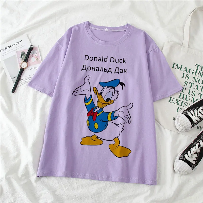 Футболка женская с мультяшным принтом Дональд Дак и коротким рукавом