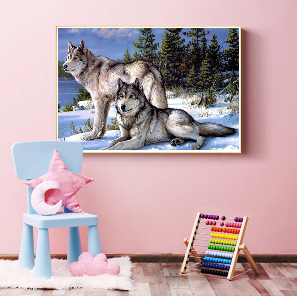Алмазная 5d-картина сделай сам с волком, алмазная вышивка с животны...