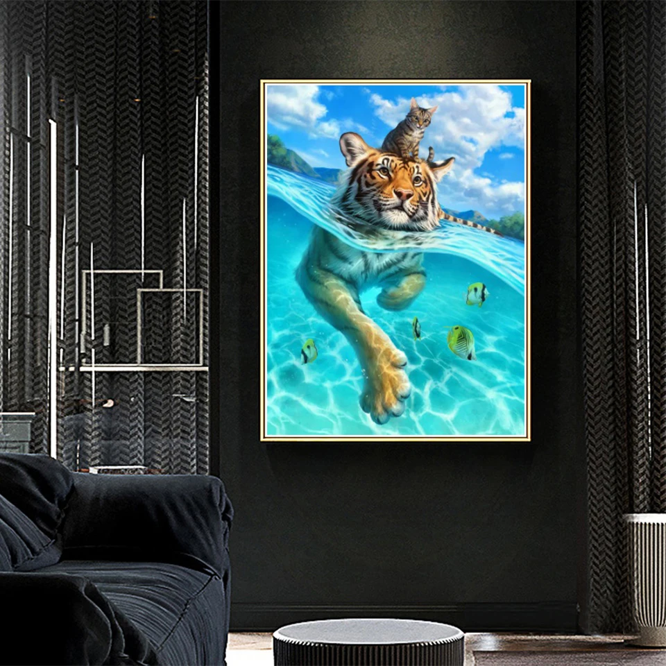 Алмазная 5D картина с животными, полная Алмазная мозаика с тигром, ...