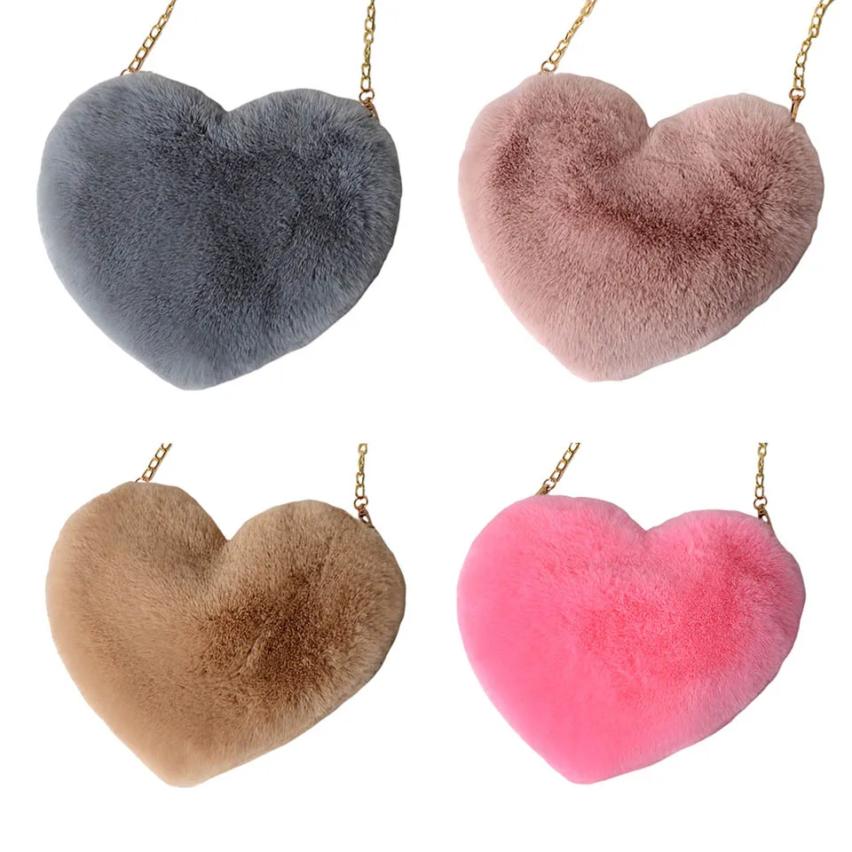 Женский кошелек через плечо из искусственного меха в форме сердца, кошелек на цепочке, сумка на плечо, сумка-тоут на плечо, зимняя сумка-мессенджер, ранец