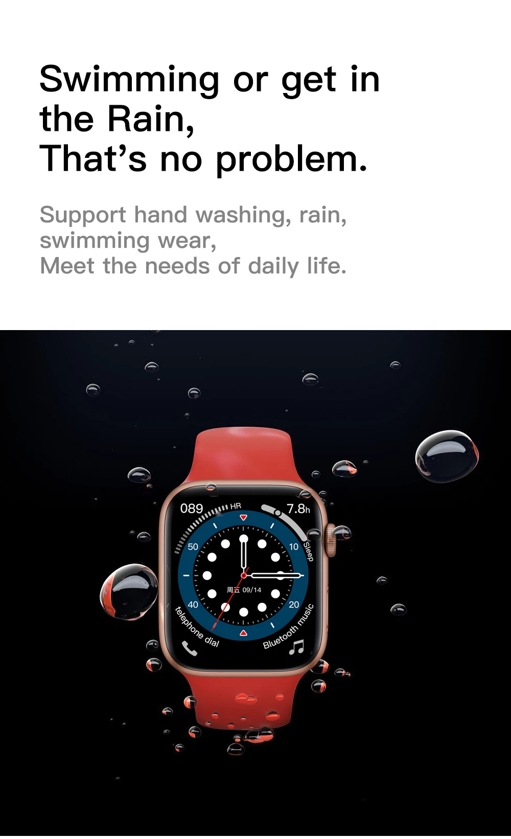 Основной точкой продажи продукта является Fruit 6 поколение 44 мм Спецификация 1:1, беспроводное зарядное устройство, 1,75 безрамный большой экран, частота сердечных сокращений, ЭКГ, обнаружение температуры тела, IP68 водонепроницаемый, 40 + циферблат можно заменить, bluetooth-звонок
