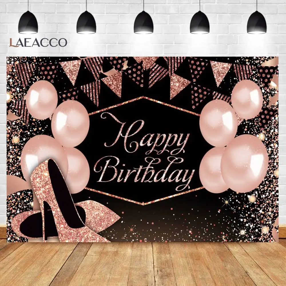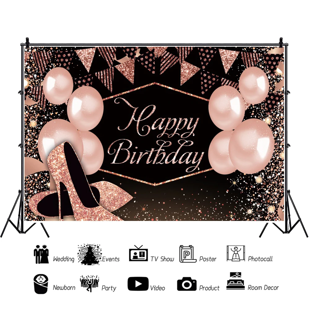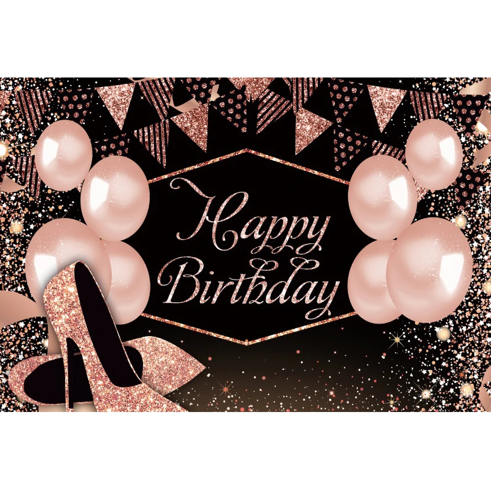 Фон для фотосъемки с днем рождения Розовый Блестящий воздушный шар высокие каблуки Шампанское День Рождения Вечеринка индивидуальный постер фотография
