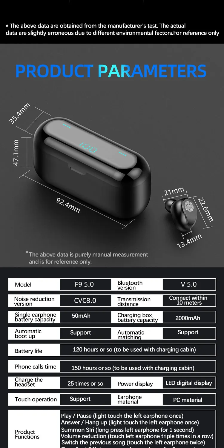 TWS-стереонаушники с зарядным футляром и поддержкой Bluetooth 2200 ...