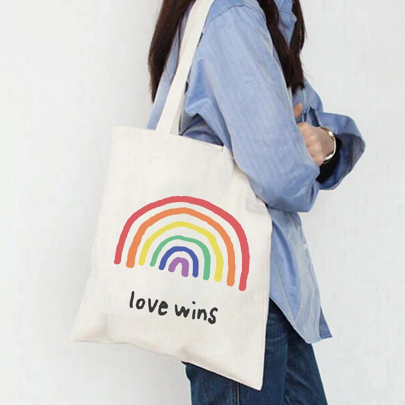 ЛГБТ Love Wins женская сумка для покупок, сумки Love is Love, большая женская Холщовая Сумка, сумки на плечо, повседневная сумка-тоут для покупок в колледже